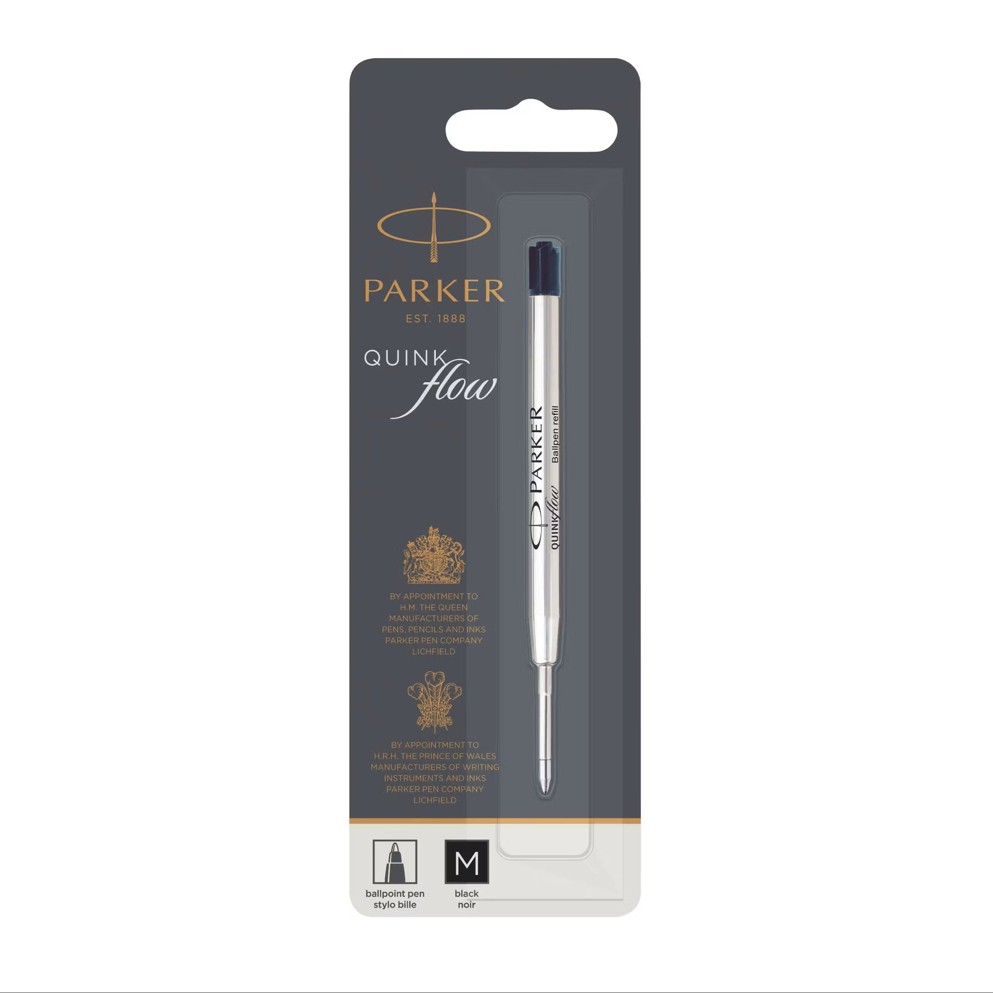 Quinkflow ballpoint refills provide an extra smooth writing experience and better ink flow, offering optimal reliability and performance. This Parker Ballpoint refill is in perfect black color. Perfect for all Parker Ballpoint Pens. Width of writing is 1 mm (Medium). The refill is packed in a cardboard blister, sleeve or sent without packaging – depending on the batch.